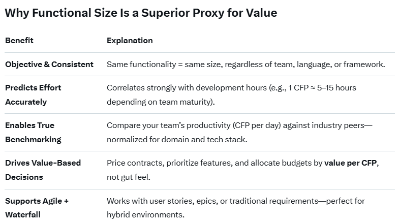 Objective Size, Real Value – Functional Size Measurement That Quantifies Business Value.