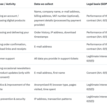 We respect your privacy and process your personal data in accordance with the General Data Protection Regulation (GDPR) and other applicable privacy laws.